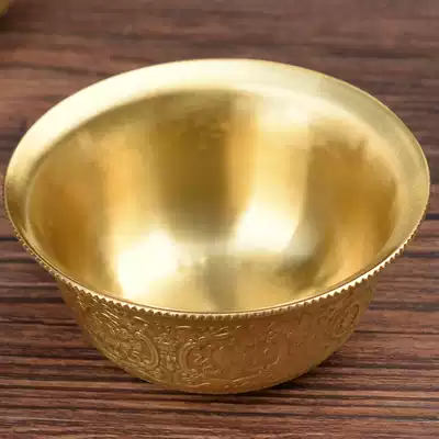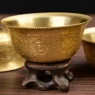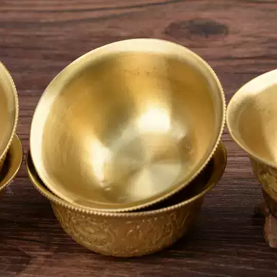 Tibet pure copper carved water supply cup Tantric seven water supply bowls Household Buddha front Buddha cup Small set of holy water cups