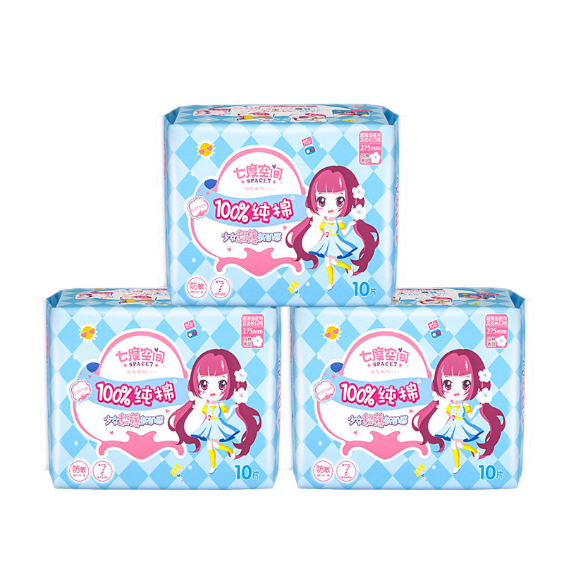 Seven Degrees Space Sanitary Cotton Female Aunt Towel Girl Pure Cotton 10 Slices Of Dress Ultra Slim Night Use Whole Box Wholesale Mix