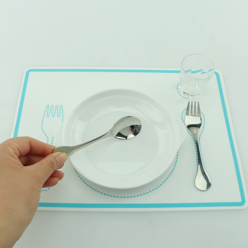 Montessori daily teaching aids Kindergarten edible grade silicone placemat tableware set Children Montessori IC class fork
