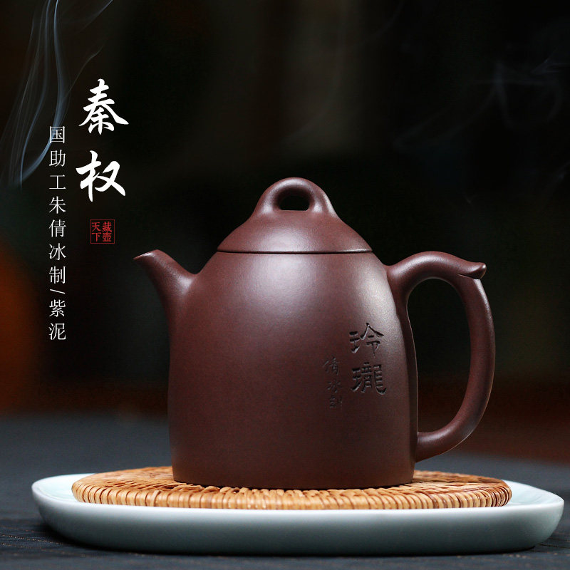 Moonpot Mingqing Yixing purple clay pot pure handmade famous authentic teapot household tea set raw ore purple mud trumpet Qin Quan