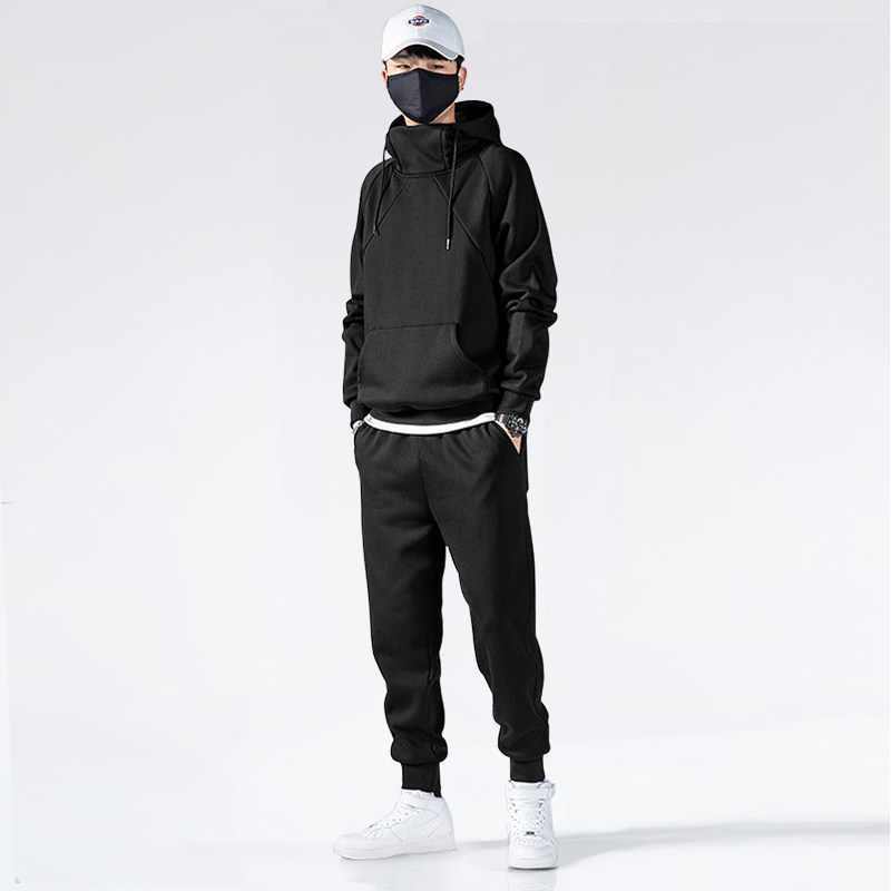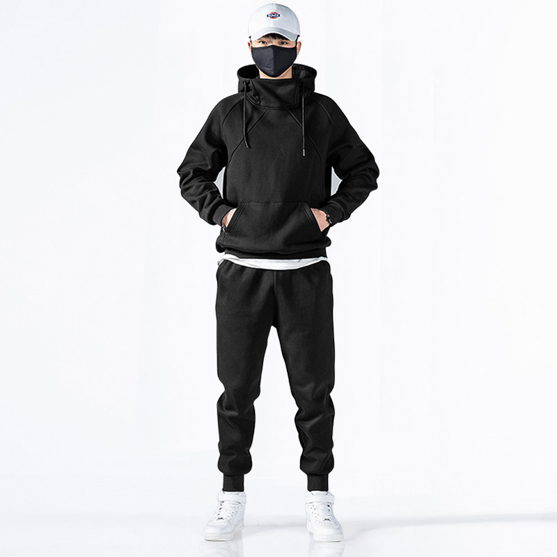 Hooded pullover high collar thick cotton T2020 new winter velvet thickened leisure sports suit warm trend set