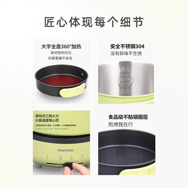 Korea Daewoo electric hot pot portable travel 1-2 people electric cooking pot multifunctional student dormitory small folding pot