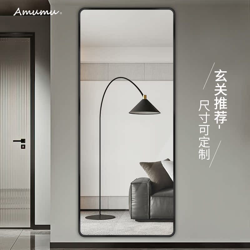 Full-body mirror wall hanger camera test lens in clothing storemirror customized wall black frame mirror landing mirror wearing mirror