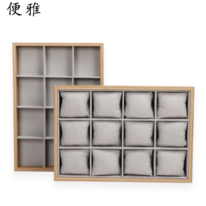 Bianya rosewood grain jewelry tray Wenwan lattice storage tray ring necklace watch jewelry display tray
