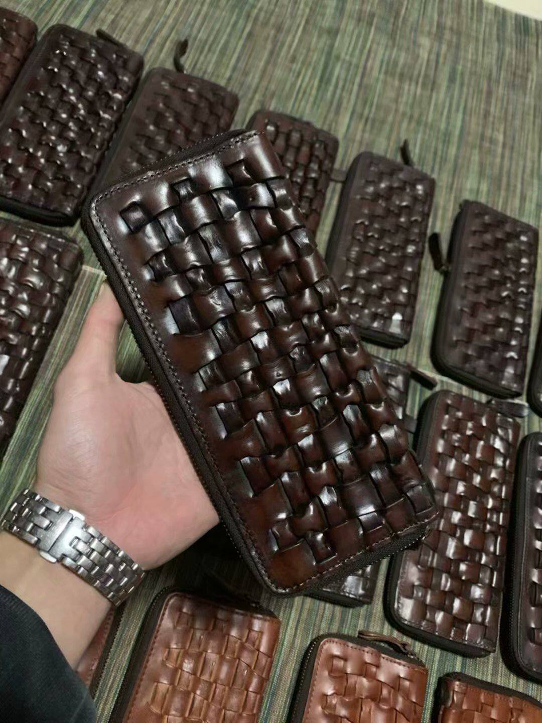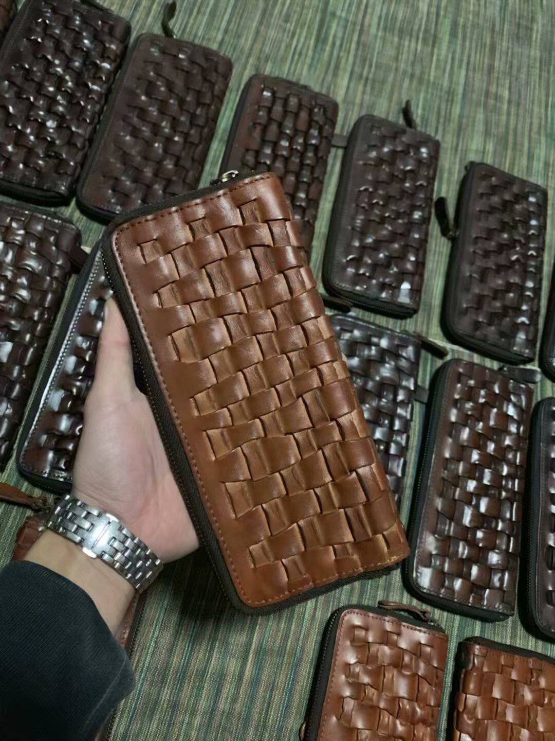 Art bouquet texture good small amount of woven straight cylinder head layer cow leather male and female long version wallet hand hold wallet
