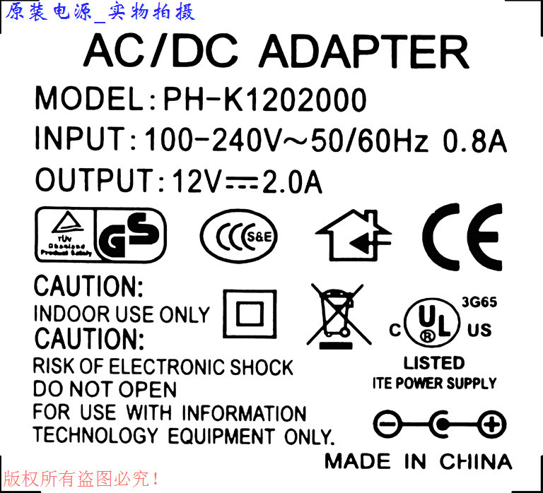AC DC ADAPTER original fit 12V2 0A dual wire power supply adapter model :PH-K1202000