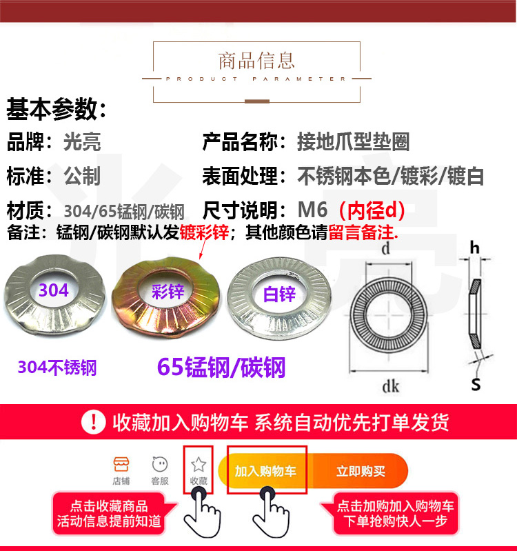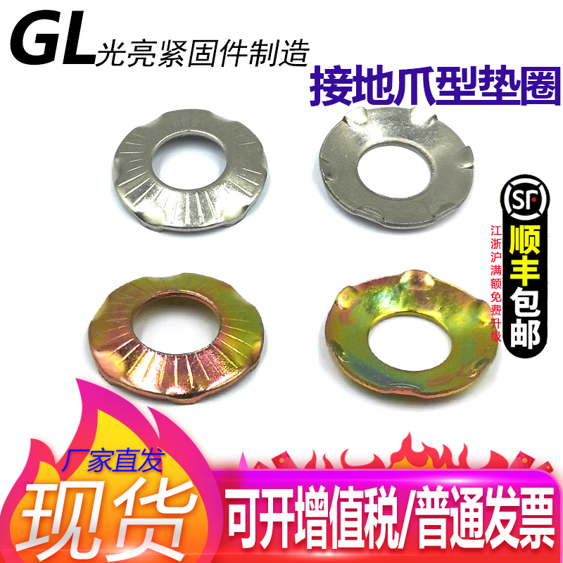304 stainless steel ground washer claw gasket 65 manganese steel plated white zinc embossed bridge connection ground wire M6Φ8Φ10