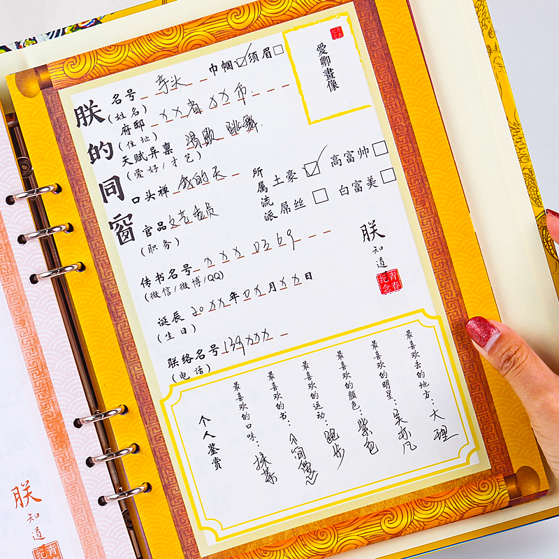 Big Character Loose-leaf Classmate Record Boys' Edition Funny Creative Personality Cool Message Book Retro Elementary School Students Graduating Classmates Record Ancient Style Primary School Students Sixth Grade Chinese Style Graduation Commemorative Book