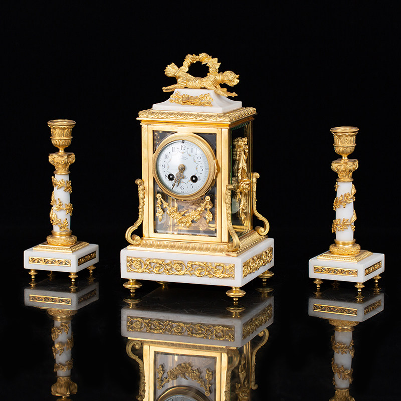 Tim European antique Western antique French Napoleon III bronze gold carala marble candlestick