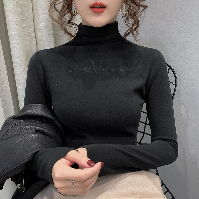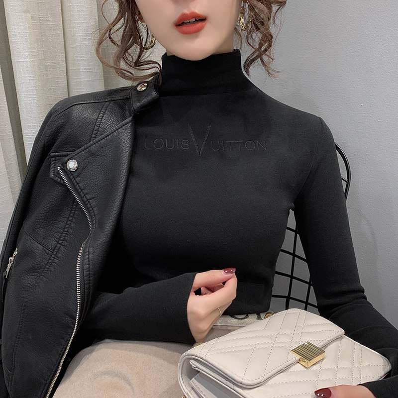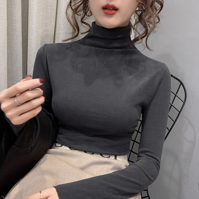 Half-height collar double-sided German velvet bottoming shirt women wear 2019 autumn and winter foreign European sanding plant plus velvet padded T-shirt