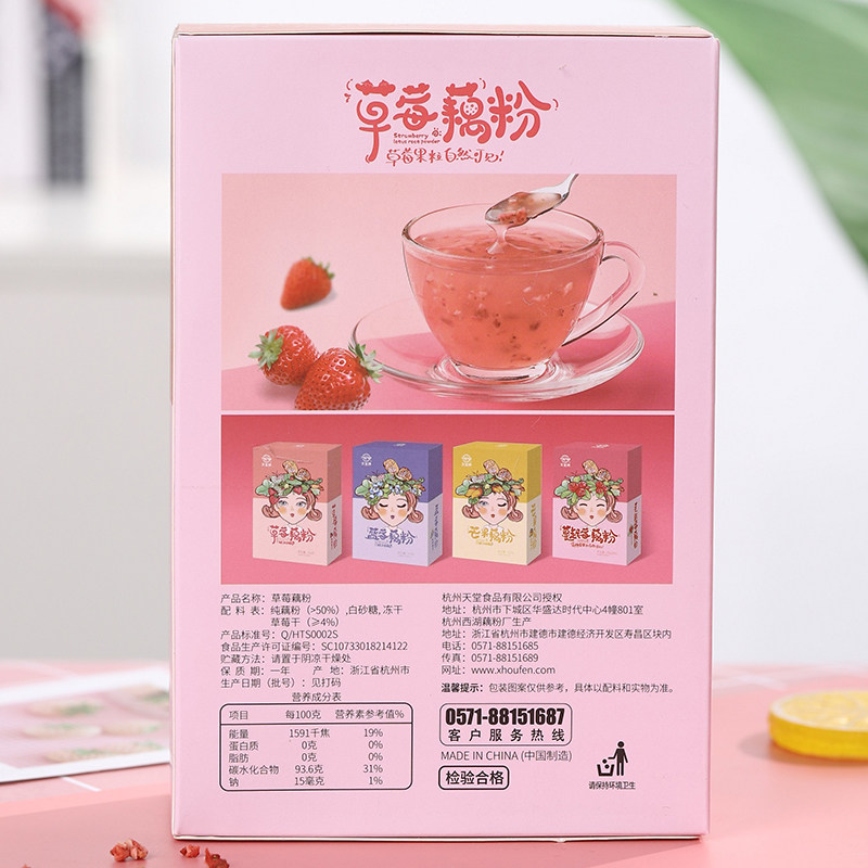 Pure lotus root starch (>50%) White sugar Freeze-dried dried strawberries (≥4%)