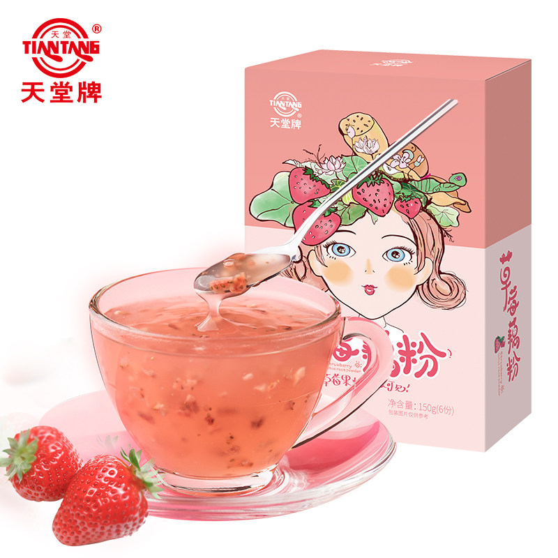 Paradise brand strawberry lotus root powder 150g 6 servings (including 12 packs) fruit freeze-dried meal replacement instant fruit West Lake lotus root powder