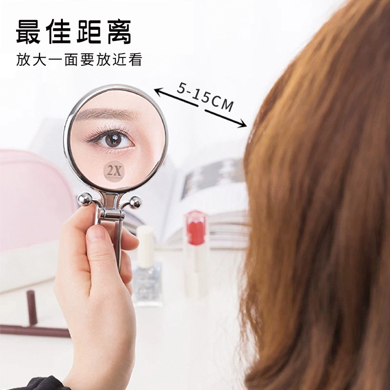 Large pink - double-sided beauty mirror (5 times on the back) Large white - double-sided beauty mirror (5 times on the back) Small pink - double-sided beauty mirror (2 times on the back) Small white - double