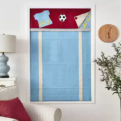 Mr football BOY BOY bedroom blue curtain Roman curtain lifting curtain lifting folding light luxury new Chinese style