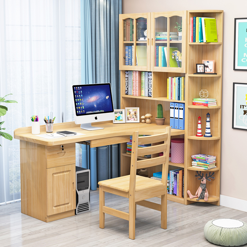 Solid Wood Desk Bookshelf Group Full House With Children Desk Student Simple Desk Corner Computer Desk Style Desk