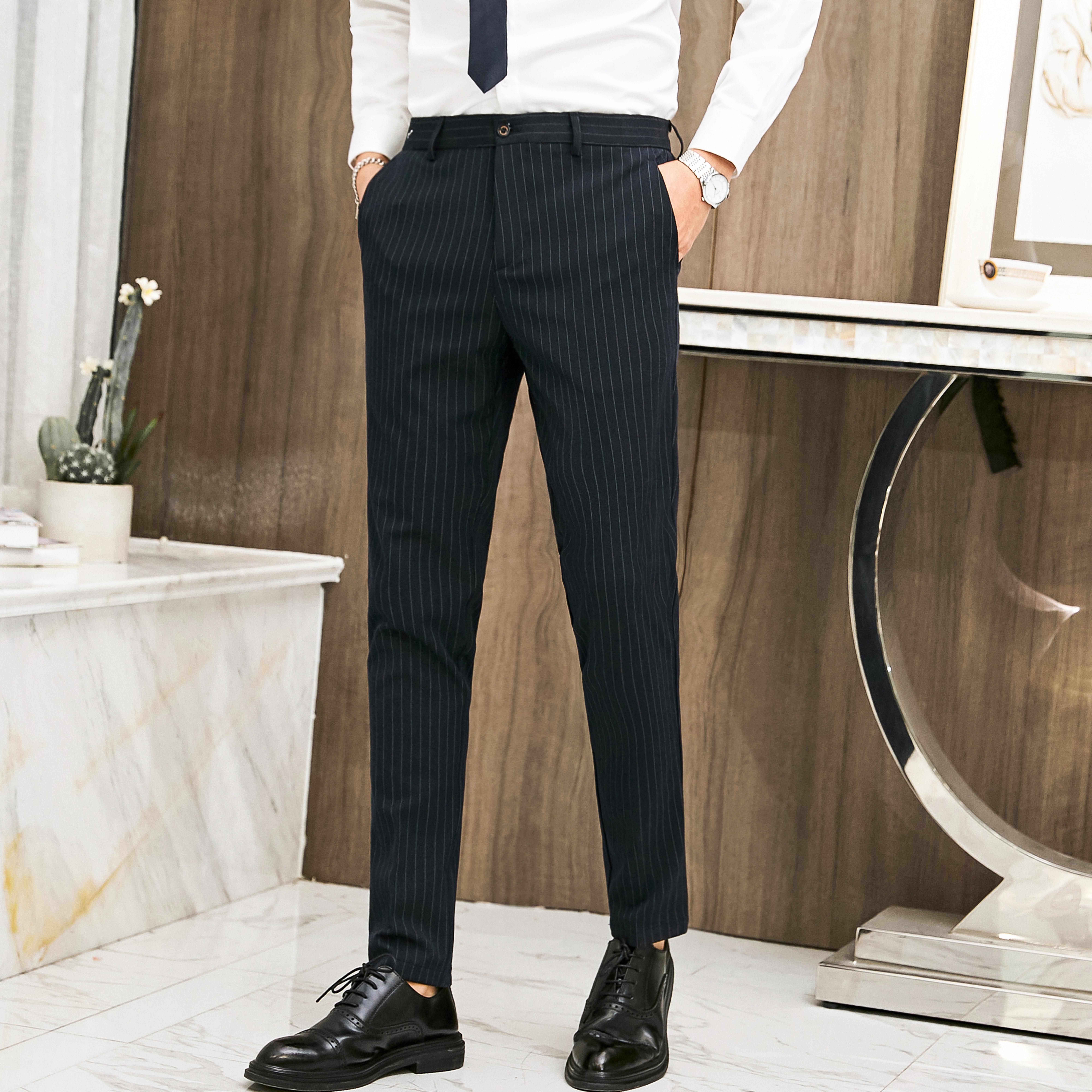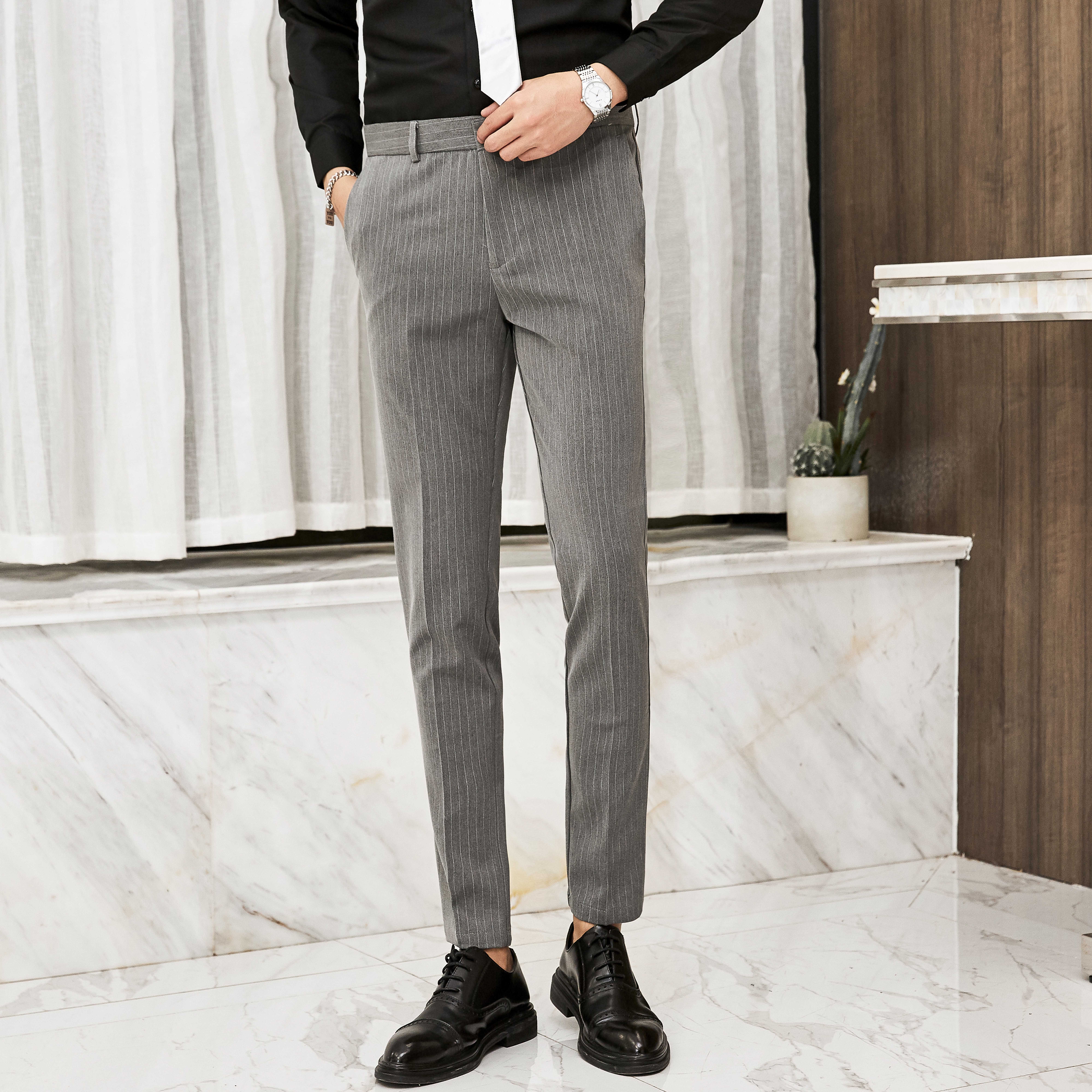 Strip pants men and Korean edition trend mens pants and pants pants business career dress suit suit small pants