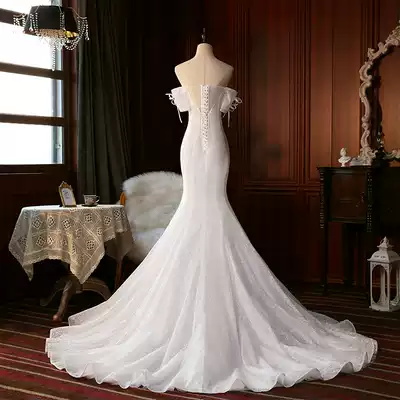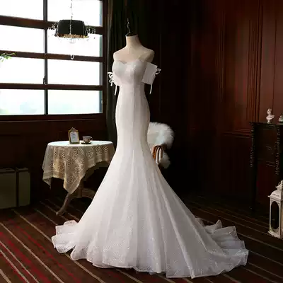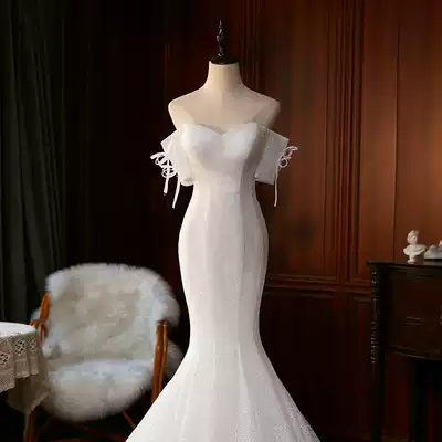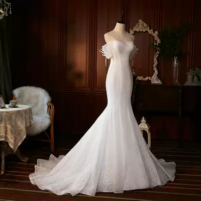 Fish tail light wedding dress 2021 New temperament bride shoulder Starry Sky small tailing slim simple French Super fairy