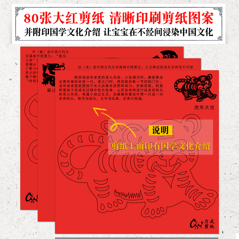 (2022 Year of the Tiger Spring Festival paper-cut) color box 77 80 (Chinese style paper-cut) color box 80 80 80 sheets 2022 Year of the Tiger Spring Festival paper-cut Chinese style paper-cut