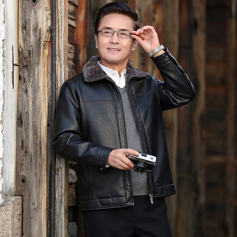 Dad Winter Clothing Jacket Plus Suede Thickened Middle-aged Men's Leather Clothing Middle Aged Warm Jacket Fur Integrated Winter