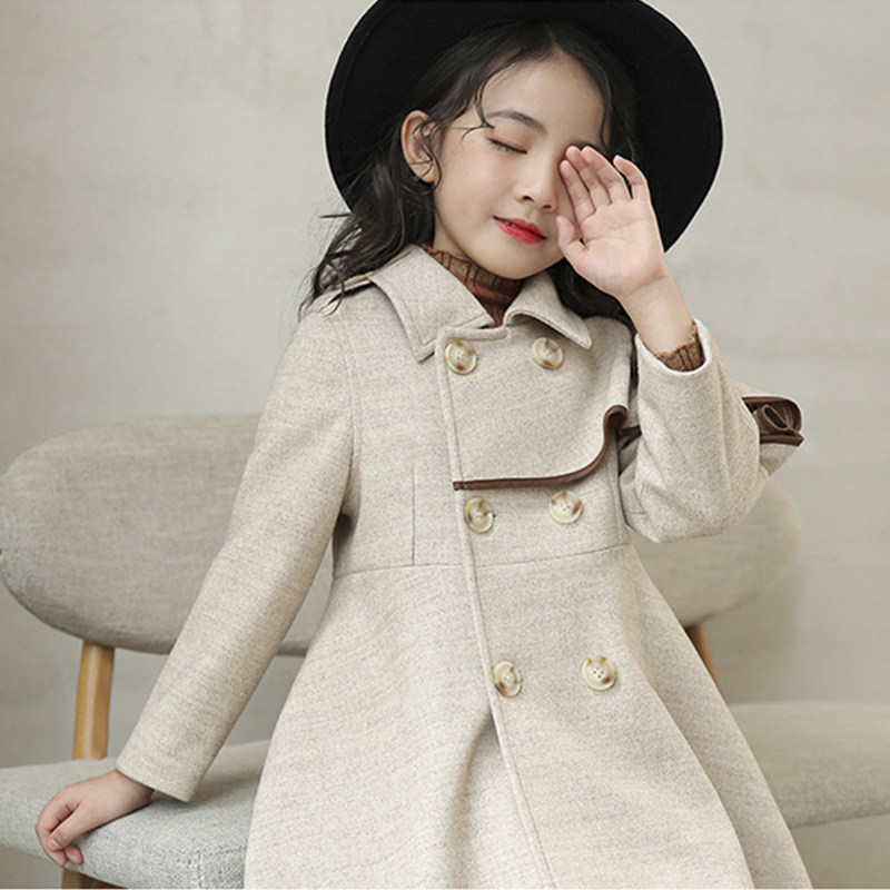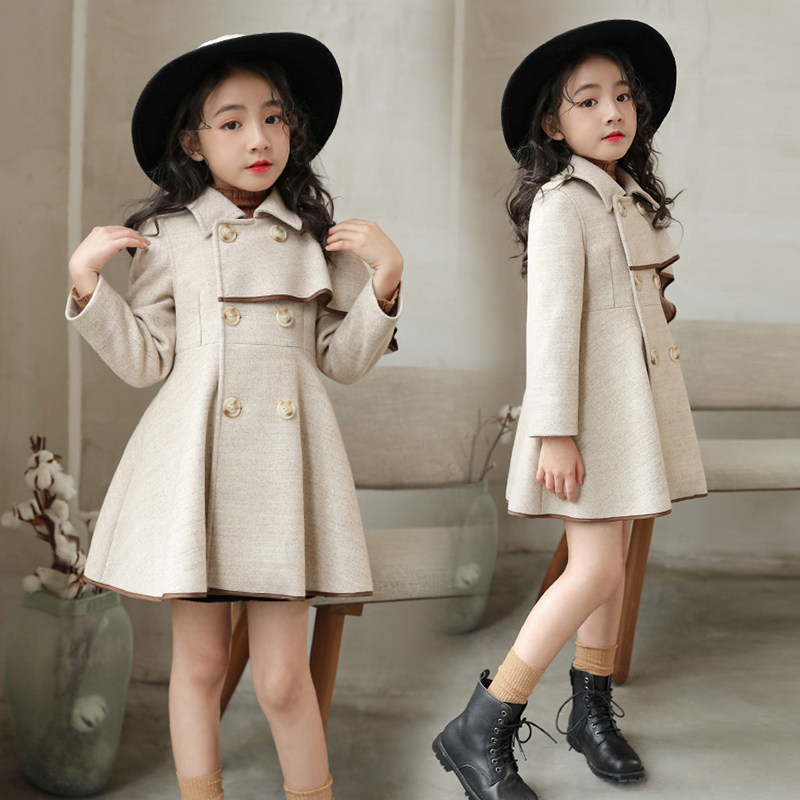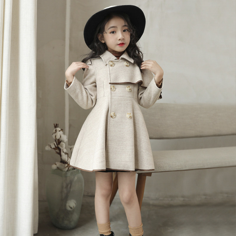 Girls' woolen coat coat 2022 new autumn and winter thickened princess wool mid-length foreign style fashion British style