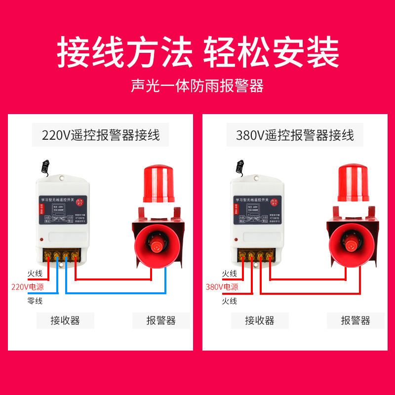Rainproof high power sound and light alarm wireless remote control 220V12V24V high decibel alarm horn warning light