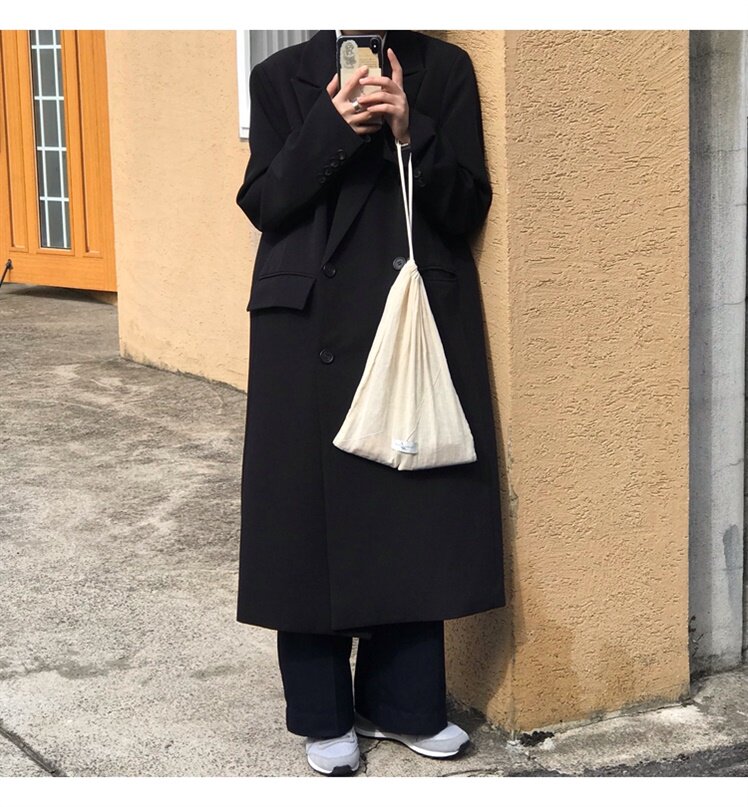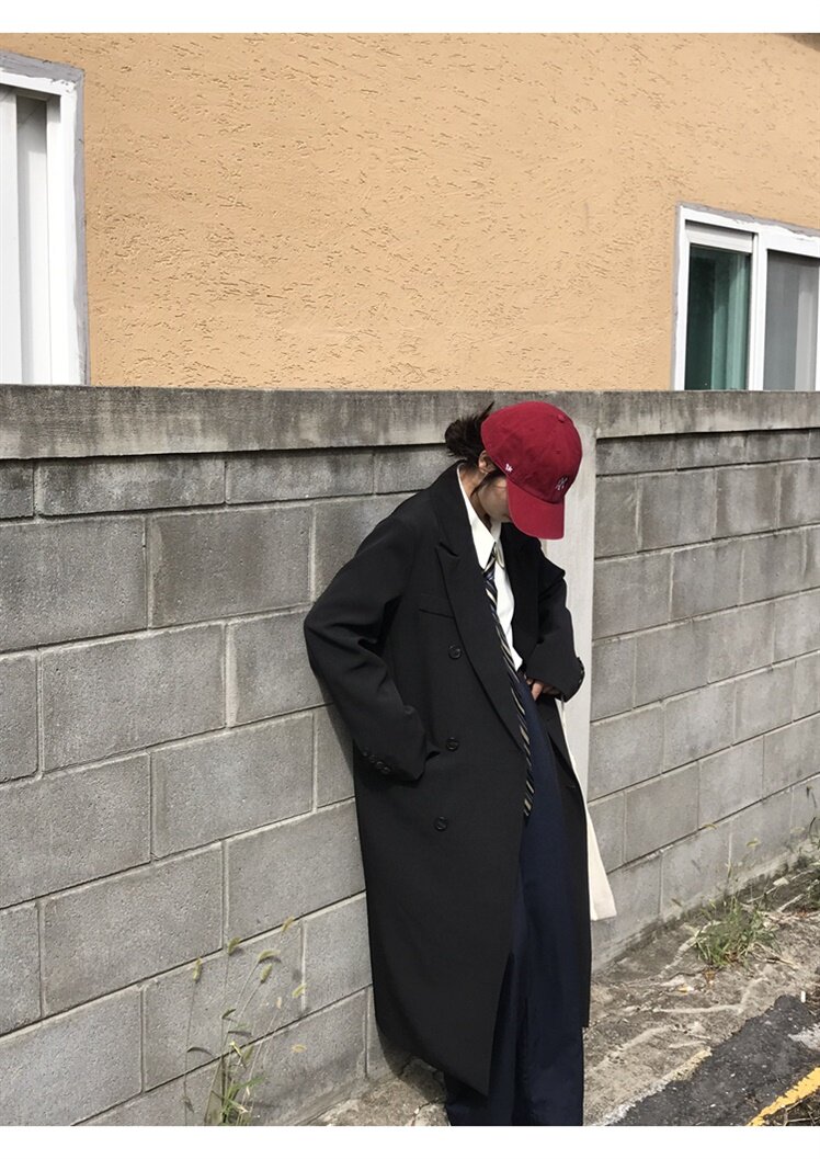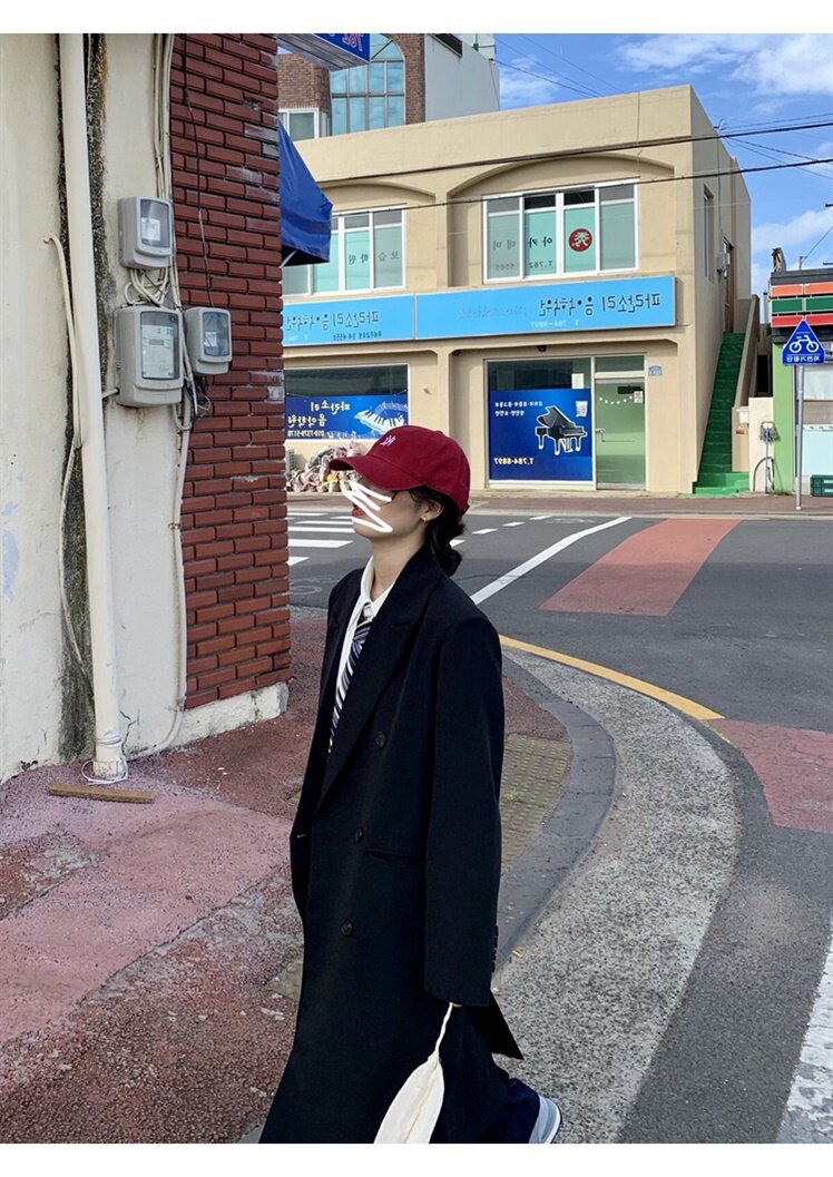 The new casual suit dress female middle - long Korean version of the black - loose British - wind coat in autumn 2023