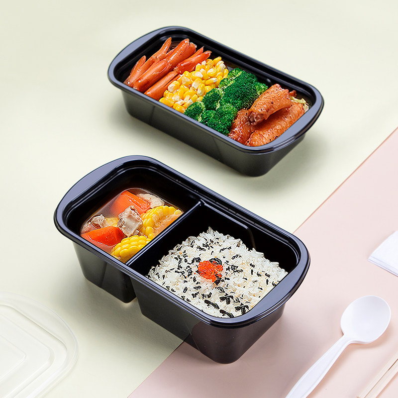 Speaker flower disposable lunch box black plastic takeaway packaging packaging box lunch box with 50 sets