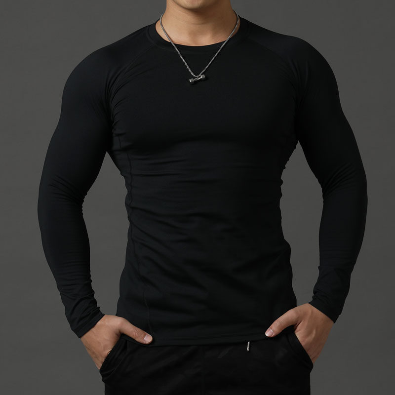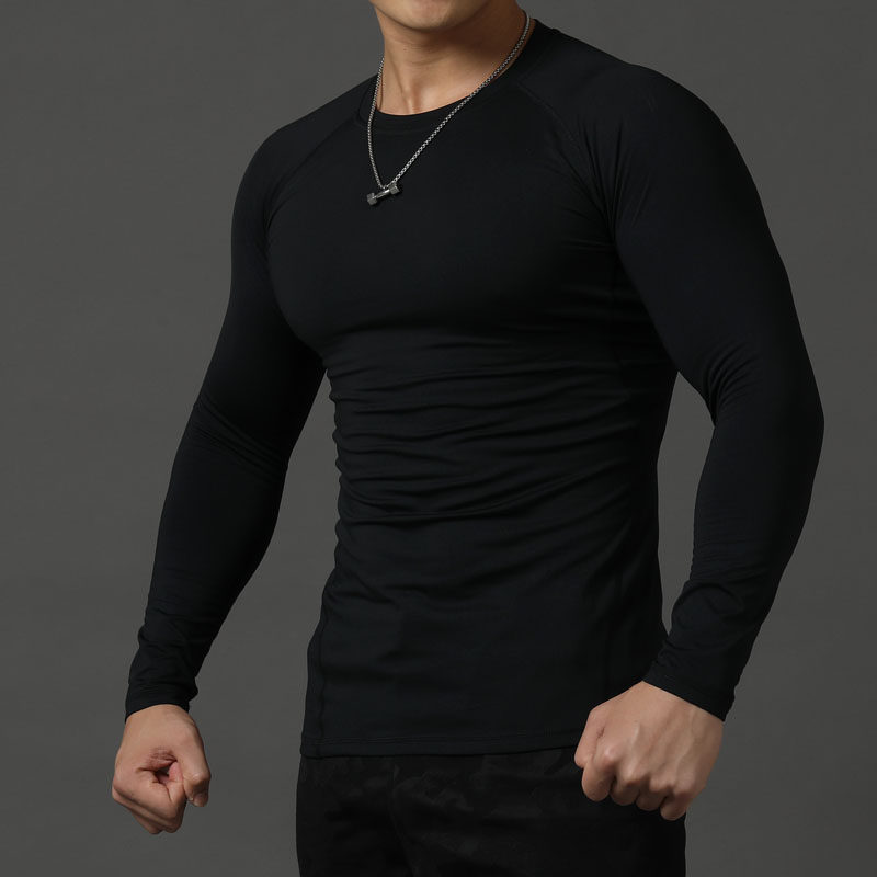 Autumn and winter fitness clothes men's fleece tights long-sleeved elastic quick-drying running training bottoming shirt coach work clothes custom