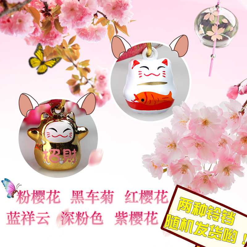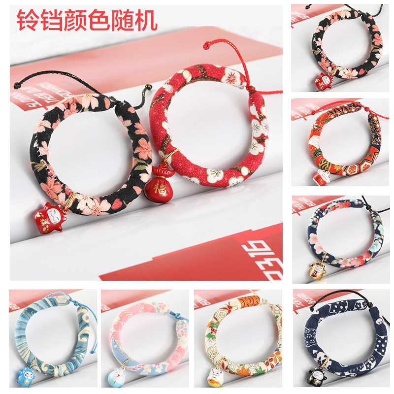 Ferret bell collar Japanese and wind hand-printed small dog cherry blossom necklace dog collar pet supplies