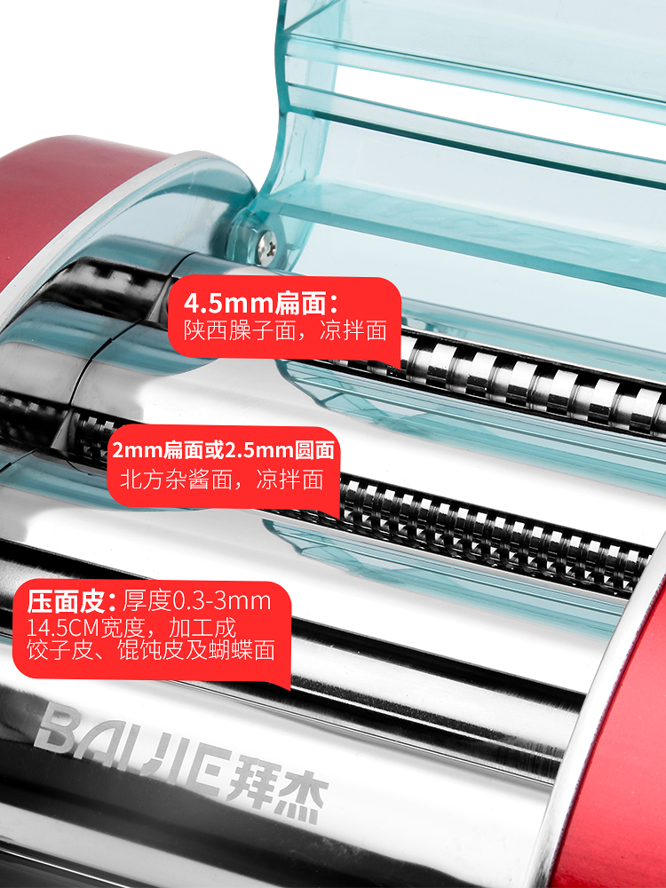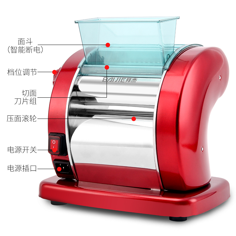 Two-knife electric noodle-making machine (red) round face two-knife electric noodle-making machine (red) flat surface two-knife electric noodle machine (silver) flat surface two-knife electric noodle-making machine (silver) round face