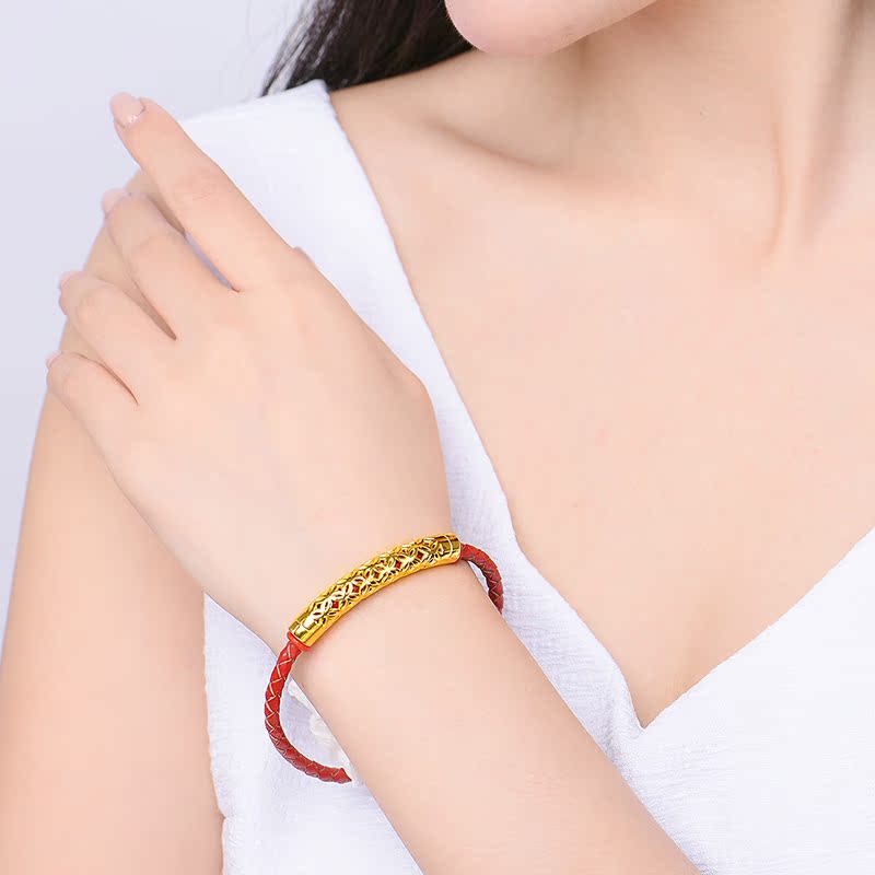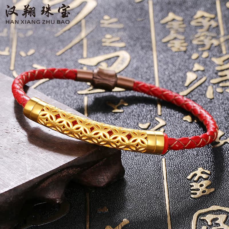999 Pure Gold Bracelet Gold Sleeve Female Lucky Baby Money Birth Year Transfer Beads Red Rope Braided Sleeve Male