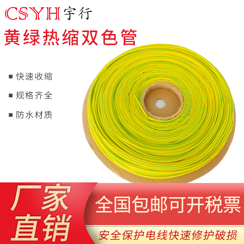 1kv yellow-green bicolor heat-shrink pipe insulation bushing earthing wire harness pipe marking heat shrink pipe 3mm-50mm