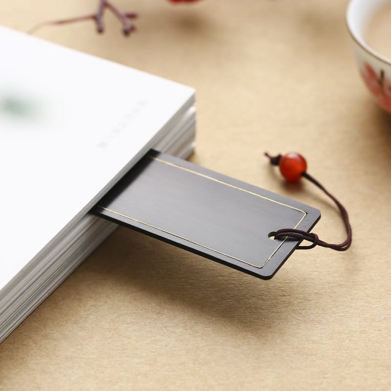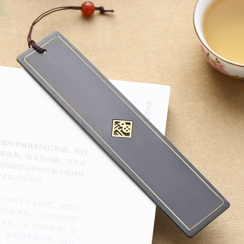 Retro-classical Chinese style red wooden bookmarks Exquisite ebony simple literary and artistic inlaid copper bookmarks for students to send teachers creative small gifts Palace Museum souvenirs custom lettering