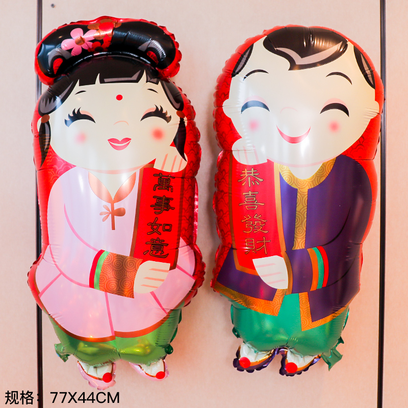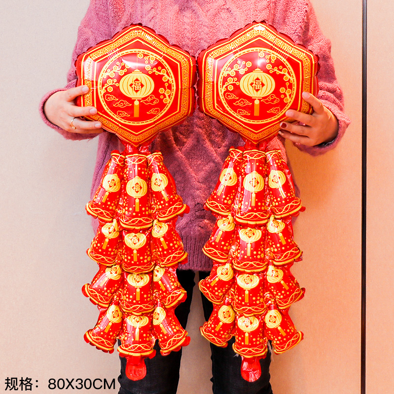18 inch New Year Happy Font One set of Golden Yuan Baofu character lantern red firecrackers A pair of red gold four-wheeled balls Four Lunar New Year Little Piggy Petch and Brown Bear New Year's Hoop Balloons