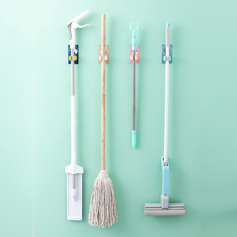 Cartoon adhesive mop mop sweep the seat mop hook strong indentation free punch mop clamping frame
