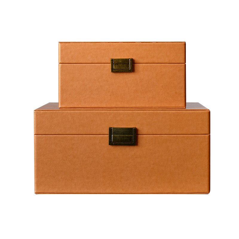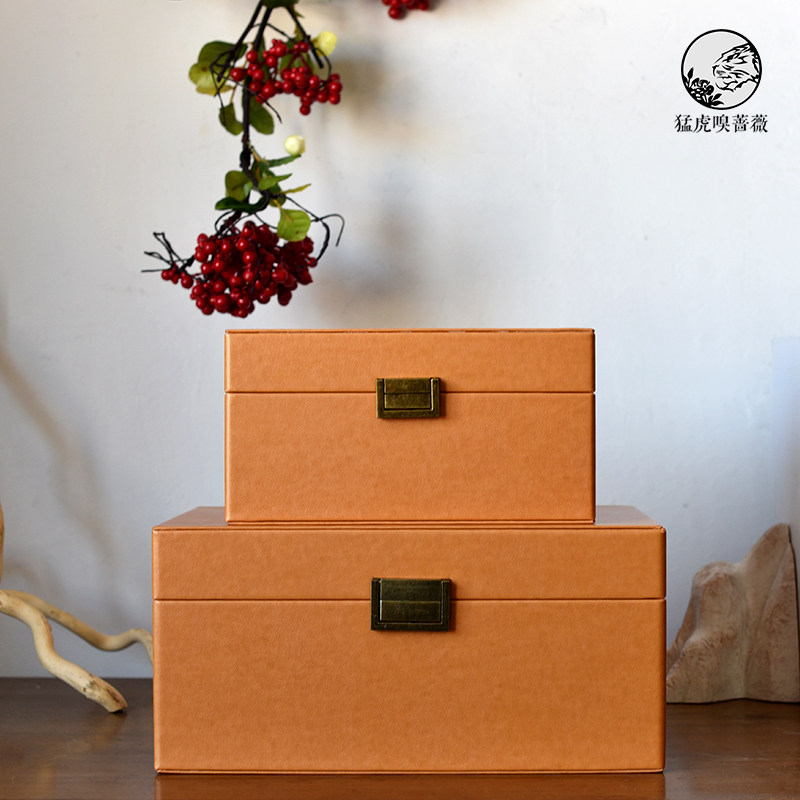 New Chinese simple orange leather advanced jewelry box storage box decoration model room desktop bookcase soft decoration