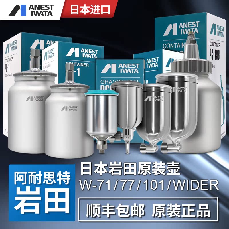 Iwata, Japan, W-71 77 101 200 wider1 wider2 Original paint pot can upper and lower paint cup