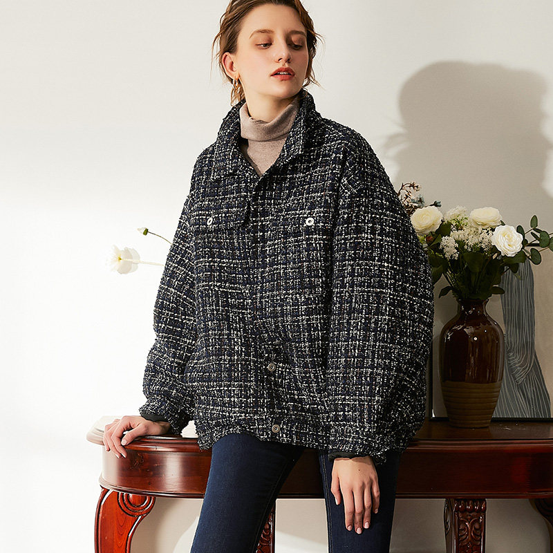 evewang thickened padded jacket small fragrance jacket autumn and winter quilted loose and thin tweed all-match women's jacket
