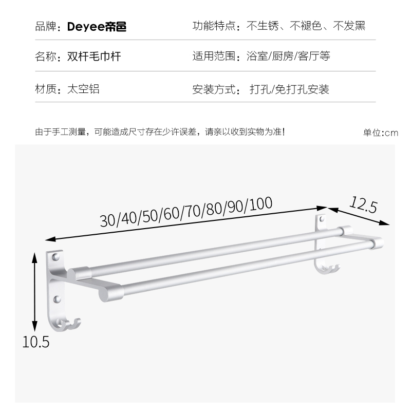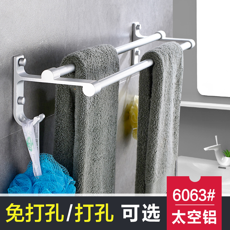 Cool Wash Face Pa Towel Rod Towel Rack Space Aluminum Bathroom Double-Lever Toilet Wall-mounted Rod Bathroom Lengthened Free Of Punch