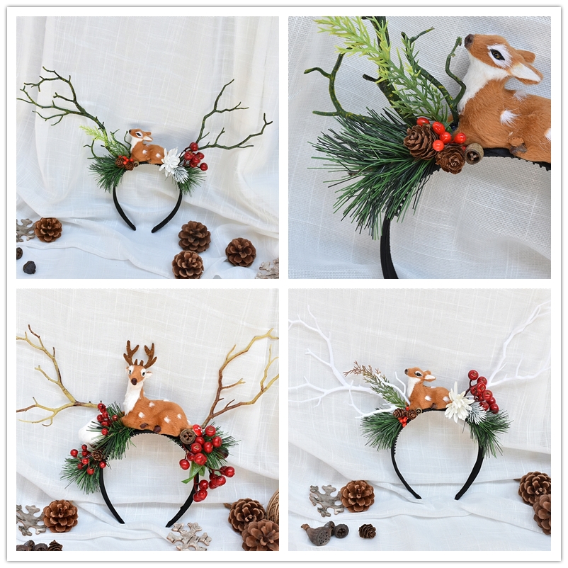Mori simulation antler headband photo antique photo elk headdress Christmas headdress wedding photography deer