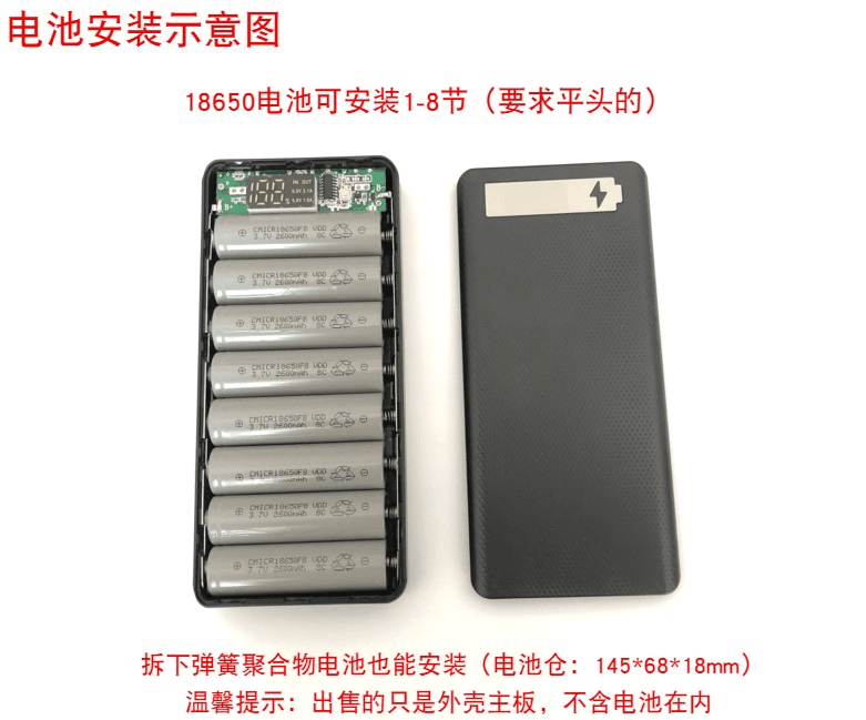 8 - knots weldless charging treasure shell motherboard package mobility box assembly kit diy18650 battery box