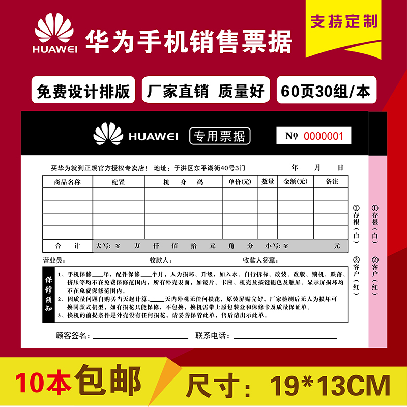 Huawei Mobile Phone Sales Bill Two Lianz Mobile Phone Store Sales Single Invoiced this Repair Order Receipt Custom Made Bill Customization