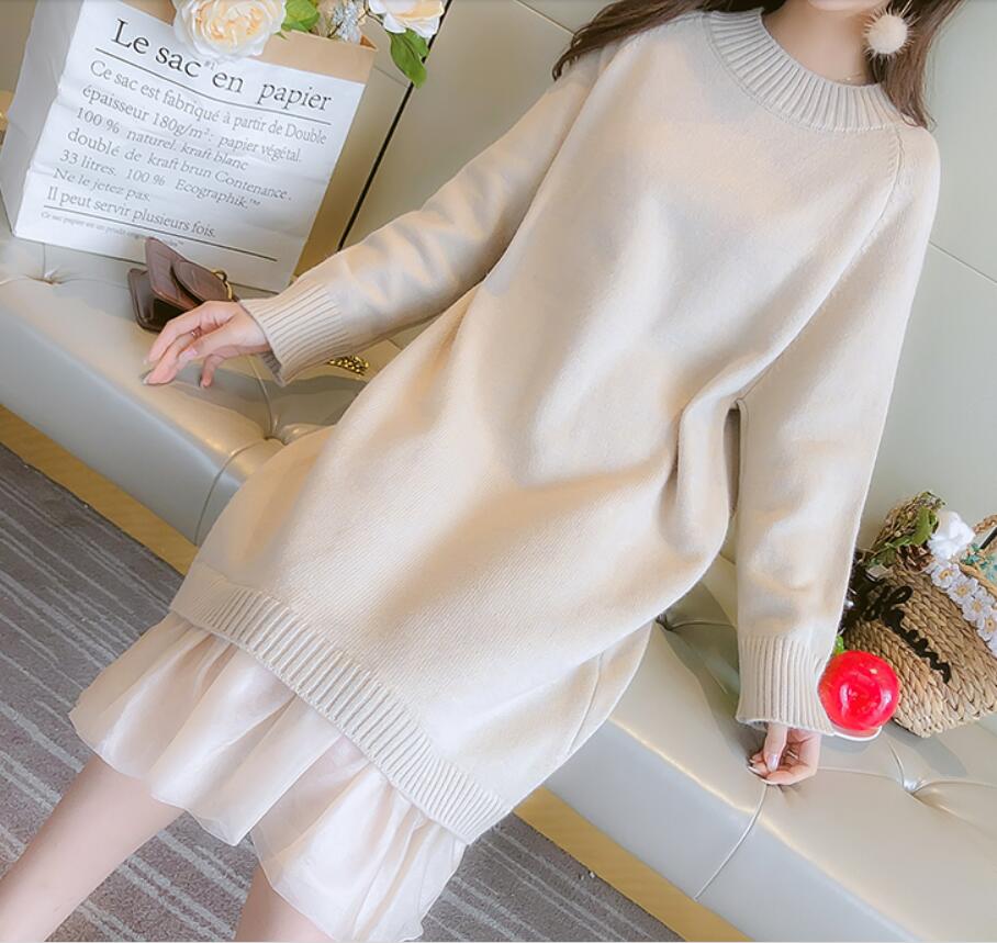 Sweet small fresh knitted dress fake two-piece sweater dress loose large size thickened fairy skirt long knee skirt