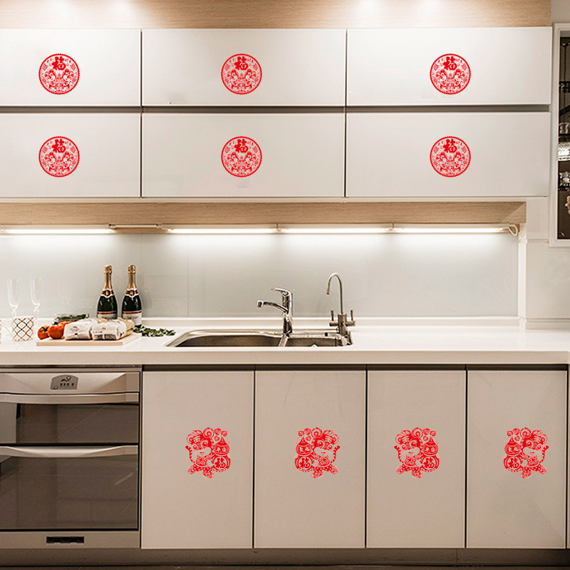 Small window grilles small mini blessing character window grilles glass stickers New Year 2022 Tiger Spring Festival paper-cut window stickers Tiger Year decoration