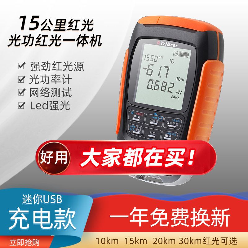 Optical power meter red light integrated machine high precision four-in-one red optical fiber pen light 10 15 30km mini rechargeable lighting pen light decay tester light receiver strong light source