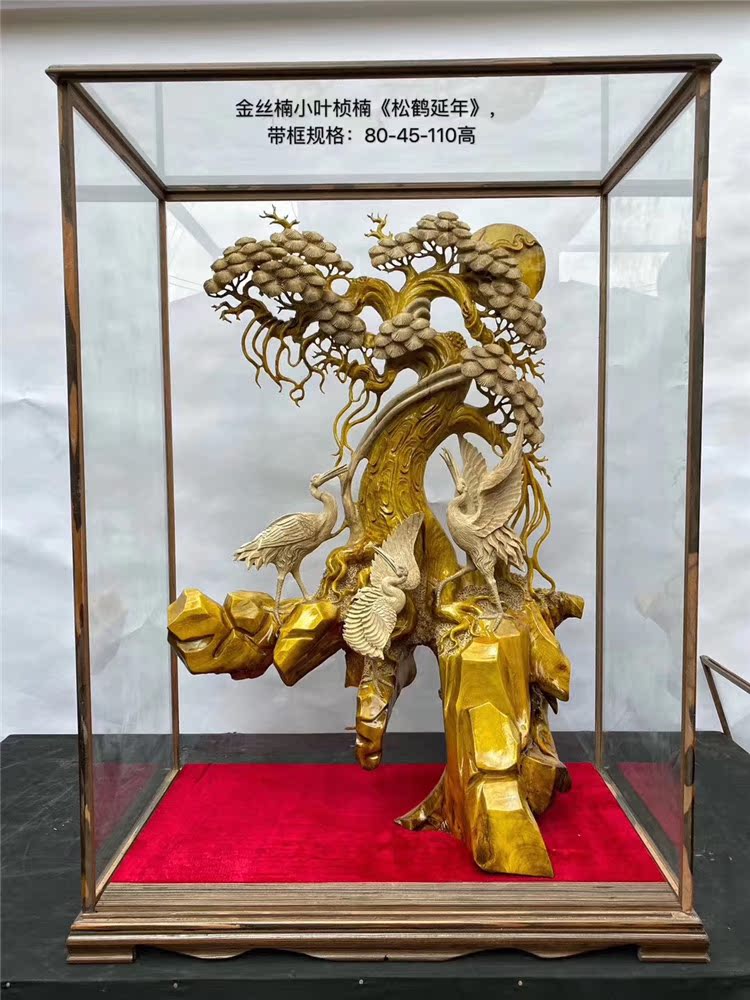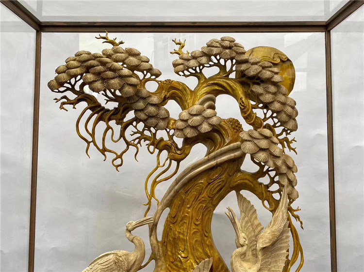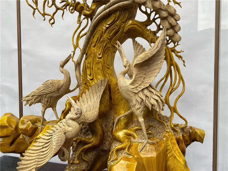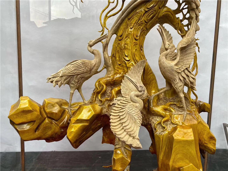Sichuan Ya'an Golden silk Nanmu ornaments wood root carving crafts Ebony pine crane extension carving Living room entrance decoration