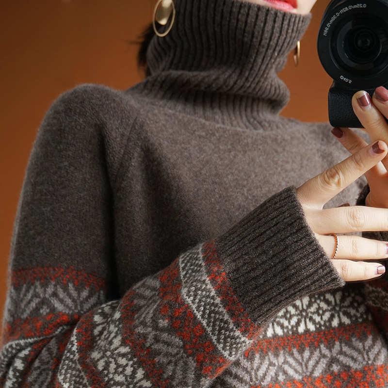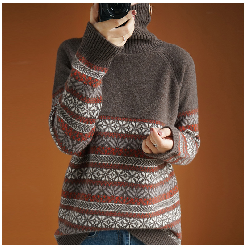 20 new high neckline cashmere sweatshirt female autumn winter thickened sleeve head retro style sloth loose knit cashmere sweater sweater