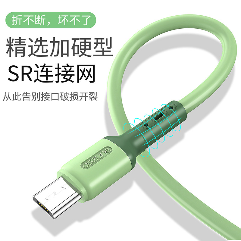 Android data line Micro liquid silicone charging line 3A flash charge applicable oppo Chong Samsung Xiaomi vivo universal flat panel lengthened 2 m single head mobile charging short