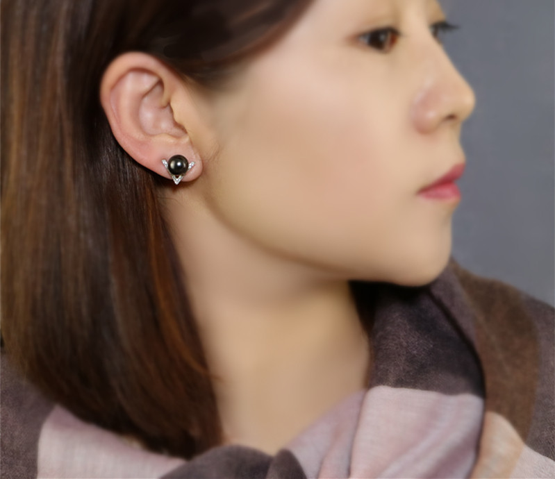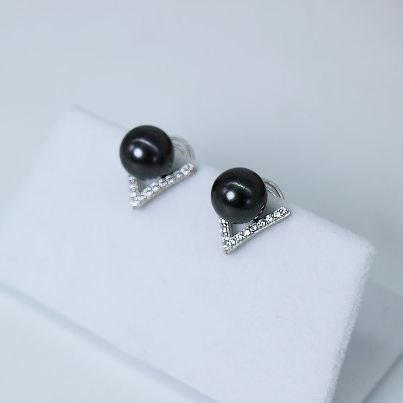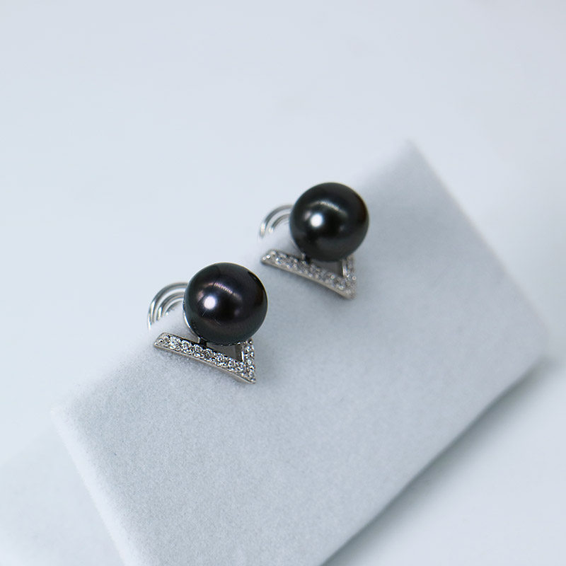 CC Brief V drill Tahiti Black pearl Invisible ear clip 100 lap without pain sensation No earbugless elegant temperament earrings