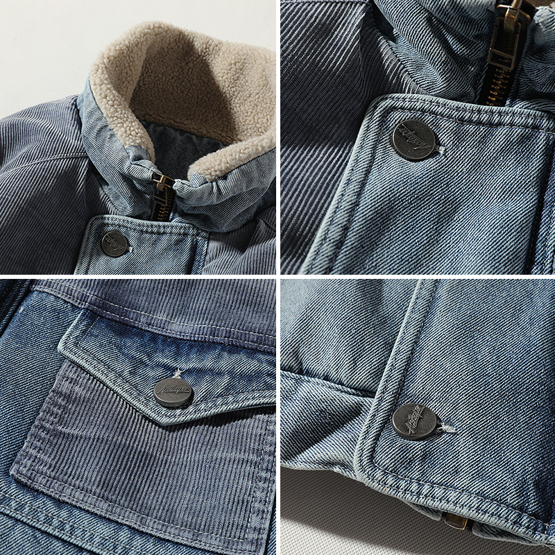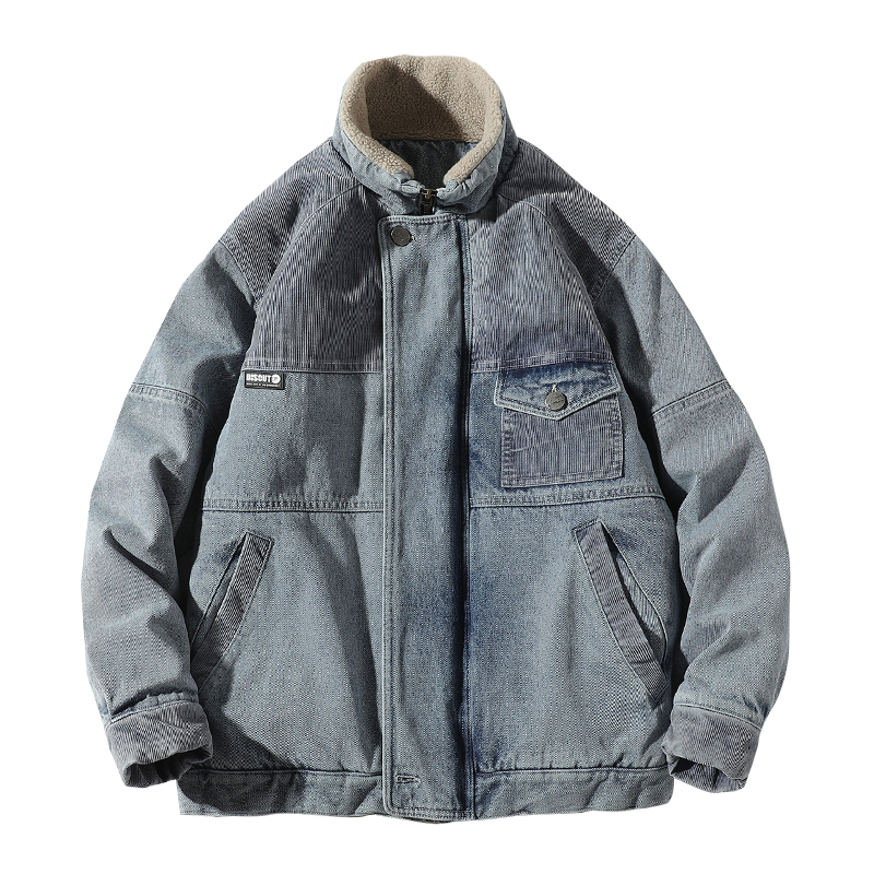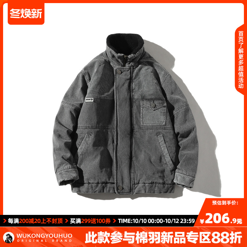 Wukong has goods in winter tide brand lamb velvet denim cotton coat men's loose thickening casual couple tooling cotton coat